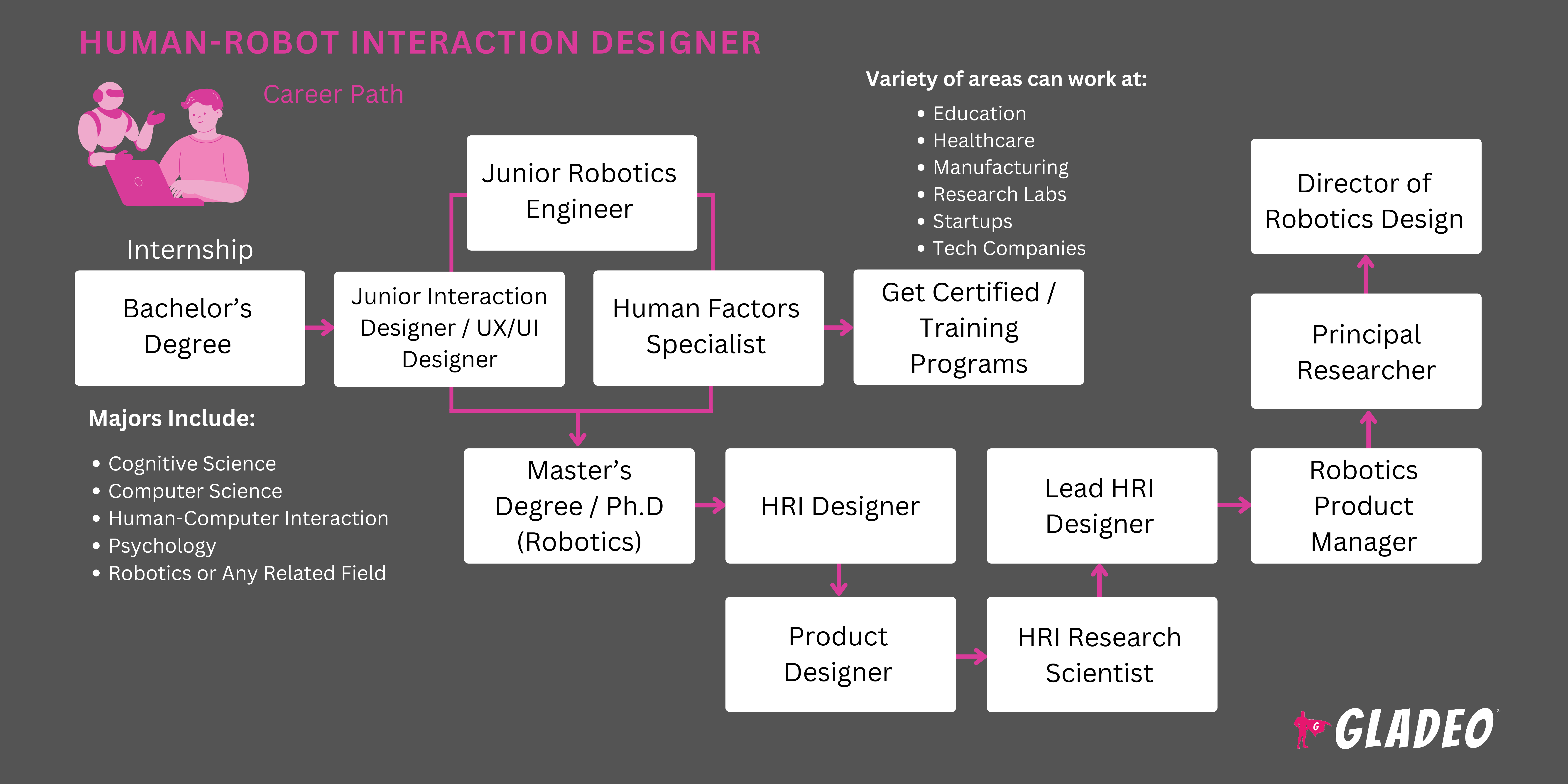 - Seek positions with increasing responsibility, such as Principal HRI Designer, Director of UX for Robotics, or AI Ethics Lead. Use industry experience and leadership skills to transition into executive roles.