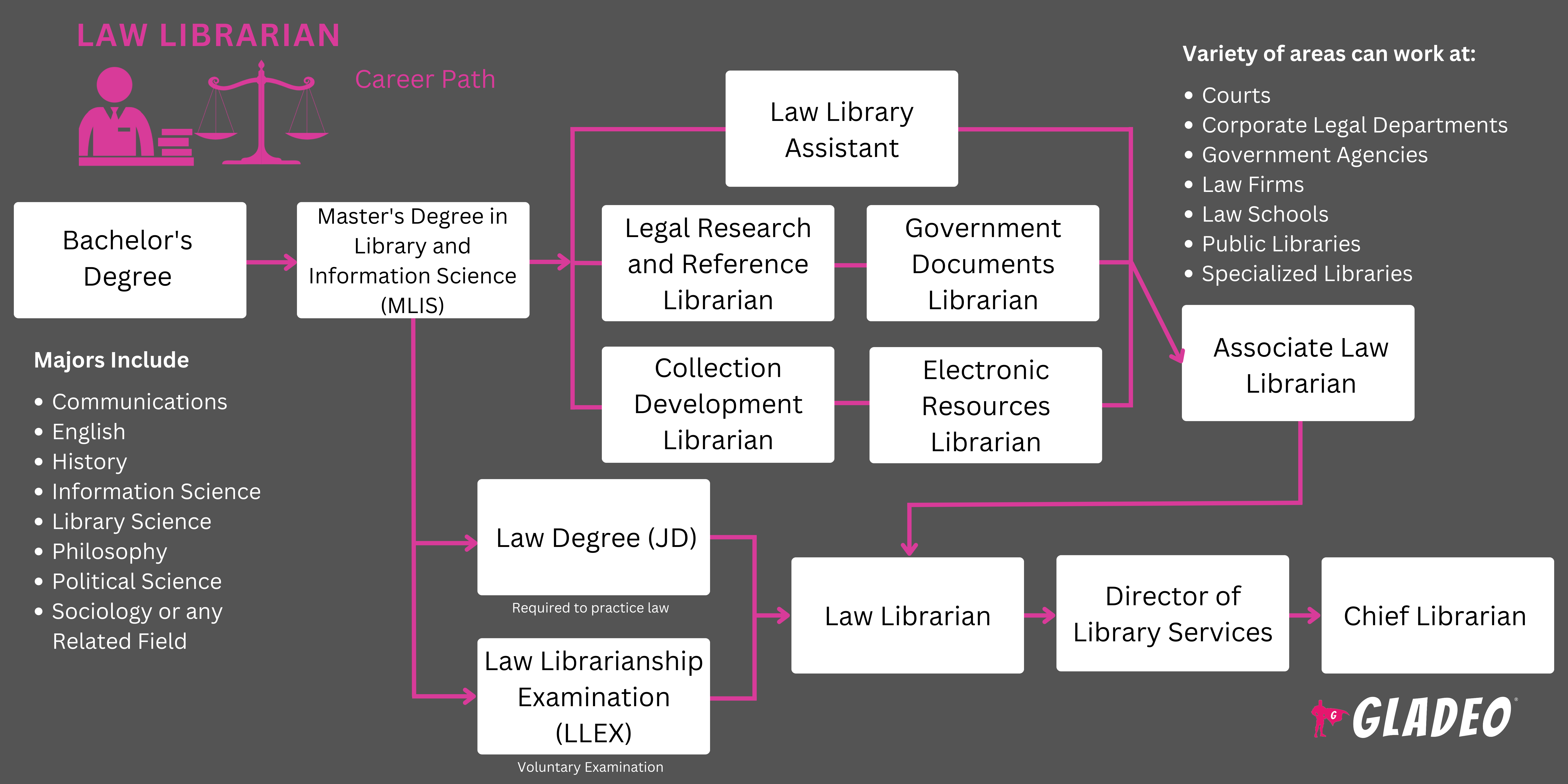 - Law Librarians often finish undergraduate degrees in legal studies, history, literature, or education. These degrees are very suitable for online and hybrid study. Graduates sign up for a Master of Library Science (or related program like Master of Information Studies or Master of Library and Information Studies). Programs should be accredited by the American Library Association.